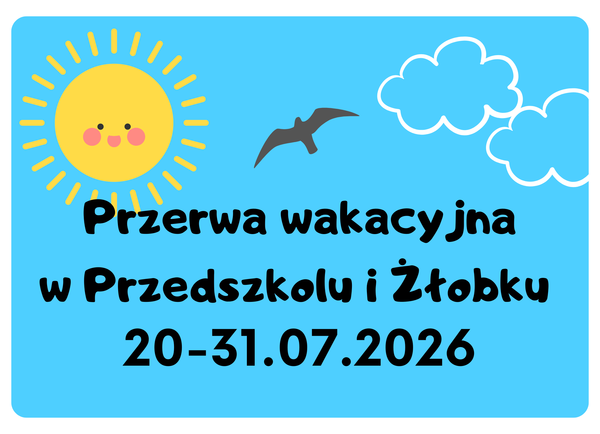 Przerwa wakacyjna odbędzie się w dniach 20-31.07.2026